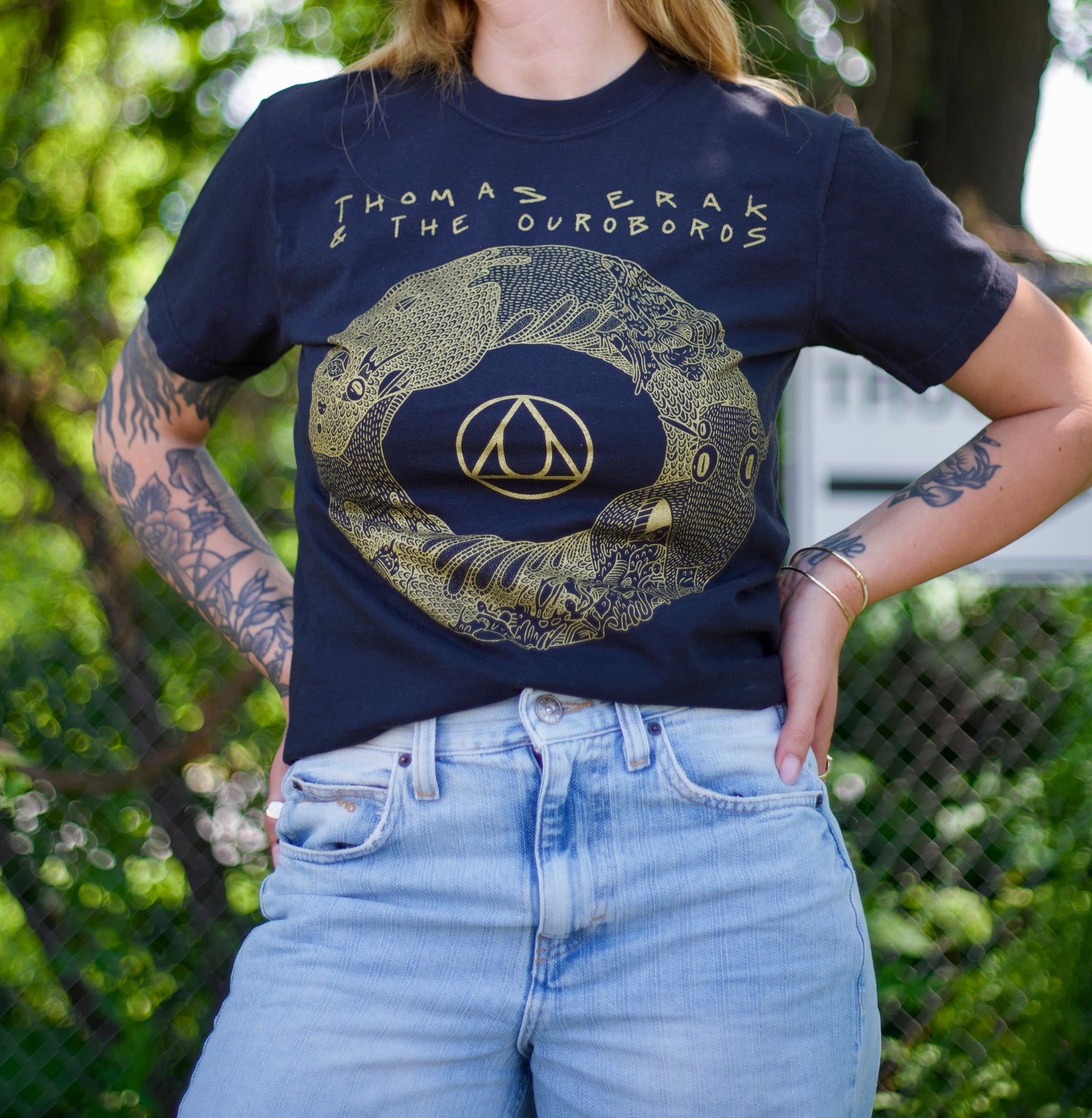 Thomas Erak & The OuroborosAlbum T-ShirtColor: Black• Iconic Design• This Shirt has printing on the front.Garment:This T-Shirt is printed on Comfort Colors.